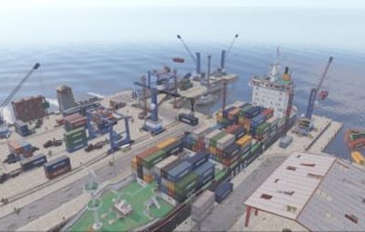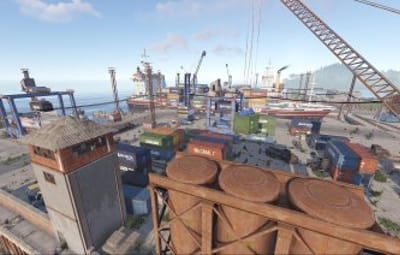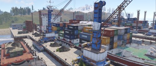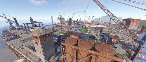 Welcome to my cargo harbor, an alternative to the standard rust harbor, except that my cargo harbor is larger and occupies less island space because I designed it with 80% of its bulk above water.