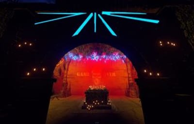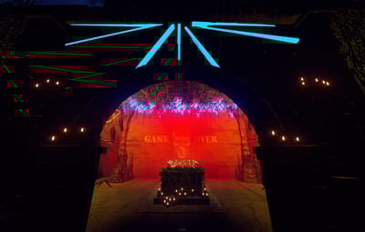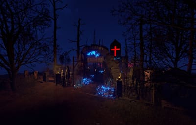 Introducing the "Cemetery of Banned Souls" - a hauntingly delightful monument that merges spooky ambiance with fun vibes.