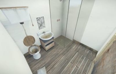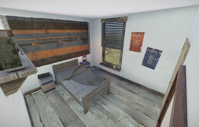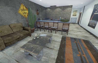Clean and modest apartment. This monument has a simple puzzle and a locked loot room. The telephone and the radio are working. None of the door can be locked by player (without mods). The apartment come with a garage with a locked room. A bathroom, bedroom and a living room/kitchen. Ideal for roleplayers and make machinimas.