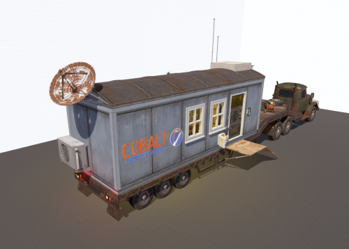 The Cobalt Mobile Relay Station is a compact monument designed for quick placement on the map or as an additional room for an existing monument. Simply place it and adjust to fit the surroundings.