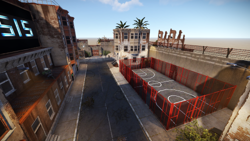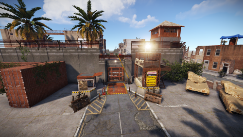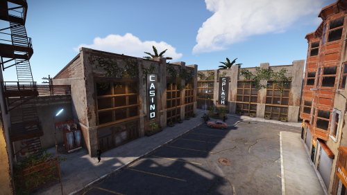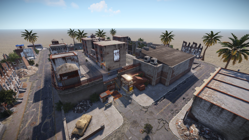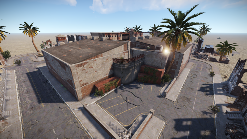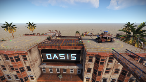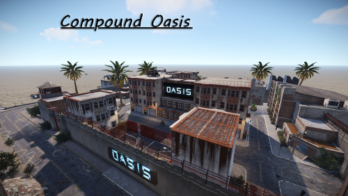 Compound Oasis is a bold and vibrant reimagining of Rust’s iconic Outpost. This heavily fortified sanctuary blends essential survival amenities with modern-day luxury and leisure, offering a safe zone that feels like a true haven.