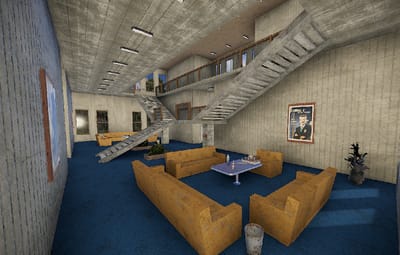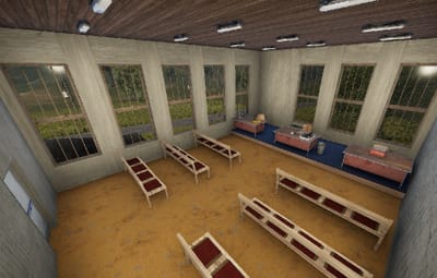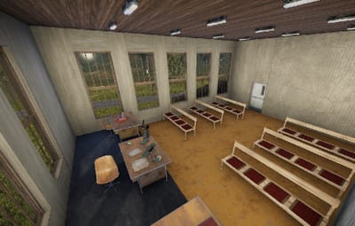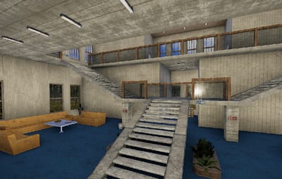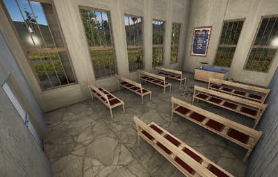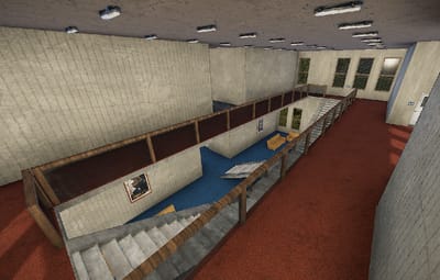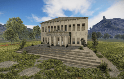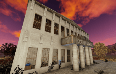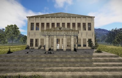 The courthouse is the optimal monument to sentence a player in the roleplaying game. There is a small courtroom and two large courtrooms, toilets, a medical room, offices and an archive for the documents in the building. a large indoor area with seating and a staircase leading to the first floor.