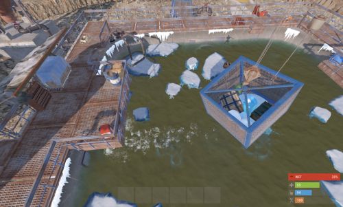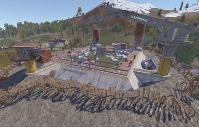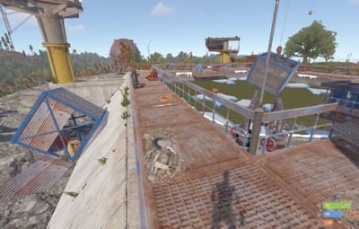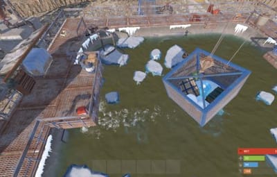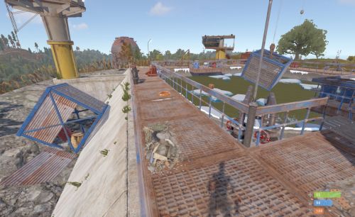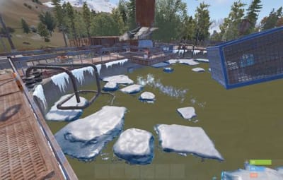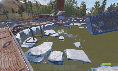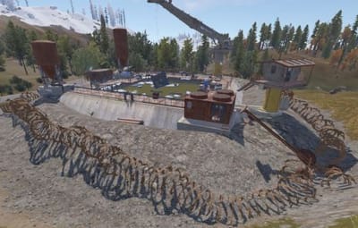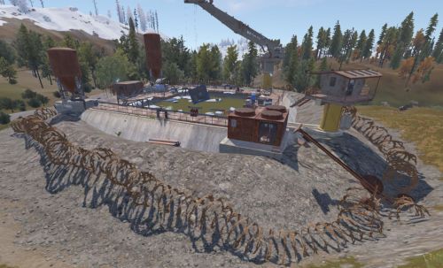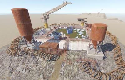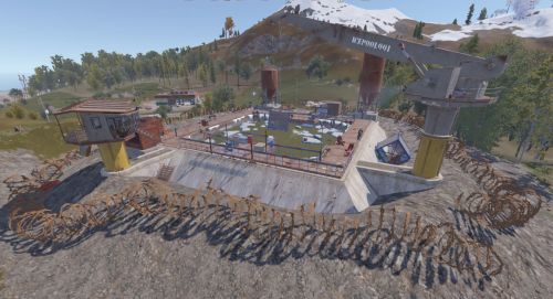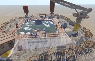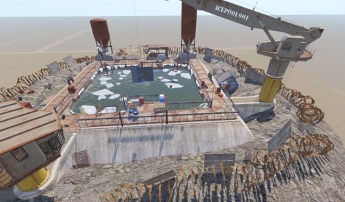 An industrial monument featuring a frozen pool where massive crystals were once cultivated. The site is abandoned but filled with interesting details and spots to explore. Loot is carefully placed, with some crates requiring keen observation and problem-solving to reach. A locked control room adds an extra layer of challenge, requiring a green keycard and some thinking to access (the green card can be found at the bottom of the pool). This monument fits perfectly into the Rust world, adding variety to your map.