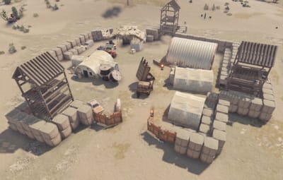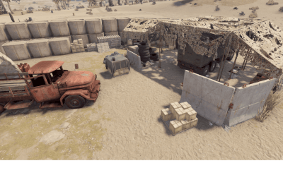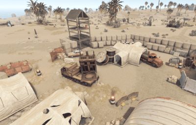 A military base for launching MLRS. The base is small and compact. It is well suited for small maps. Here you can find different types of crates and get barrels. There is also 1 ammo box