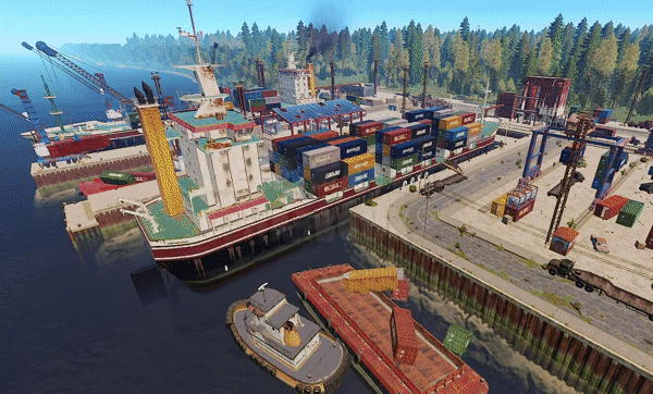 A huge harbour monument designed to fit into rust better as the current harbours are way too small and have no slipways for the cargo ship to be able to dock in a realistic fashion. I hope to change the harbour monument into a low to high-end loot monument that's visited a lot more by players and is large enough to dock large ships.
