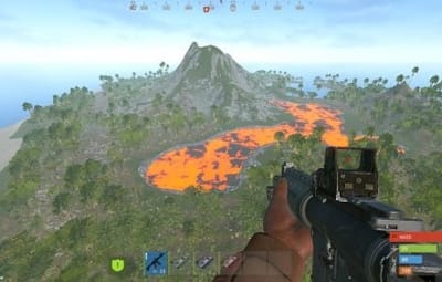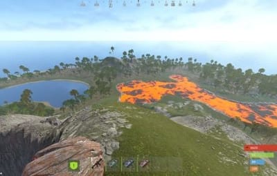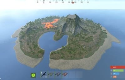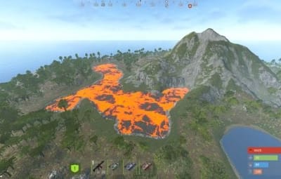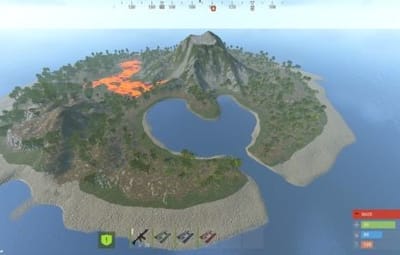 an entire island (~size 1250) with a large temple monument under the volcano. 4472 Objects