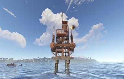 The Derelict Platform is a small ocean-based monument that provides other options for players wanting to gather loot mid—or early in the game. This small monument has a single scientist protecting his stash; kill him and get your bounty.