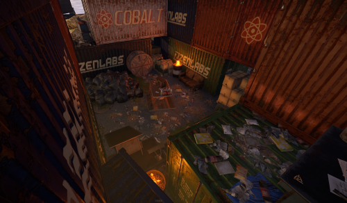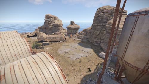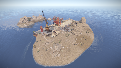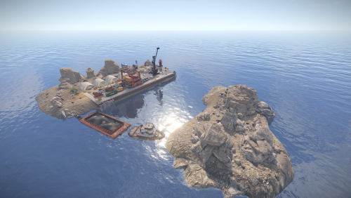 In addition to resources, you can also loot a custom underwater laboratory, which includes one door requiring a red keycard and two doors requiring blue keycards! The island also features bots, various decorations, and generally a lot of interesting things! There are also several places where rocks spawn, including some underwater!