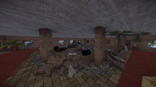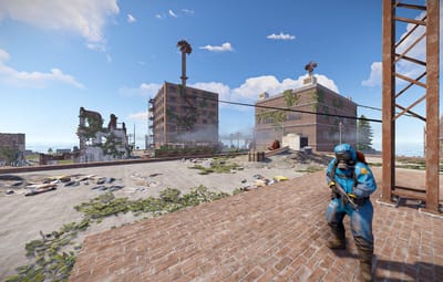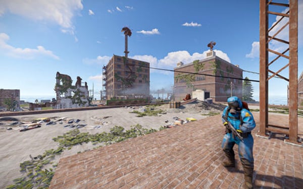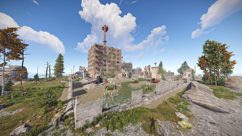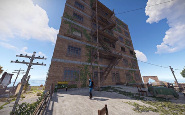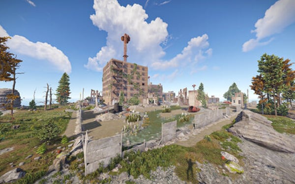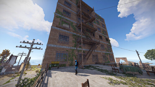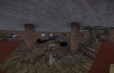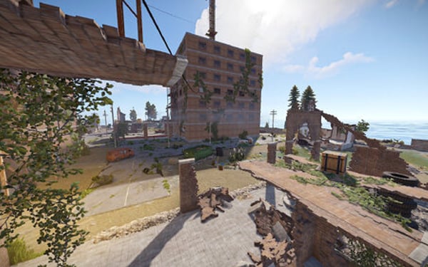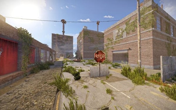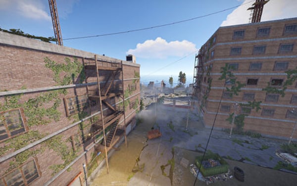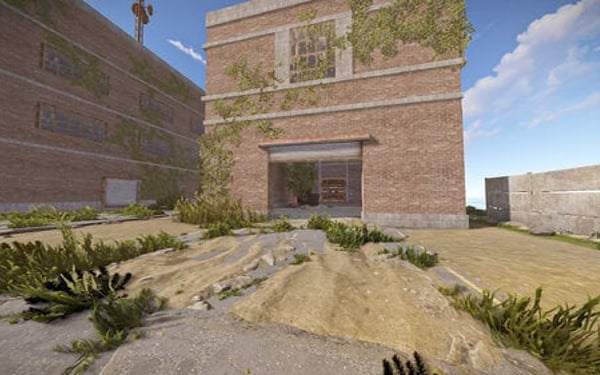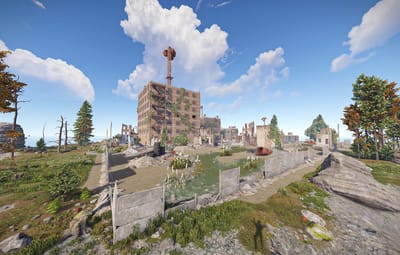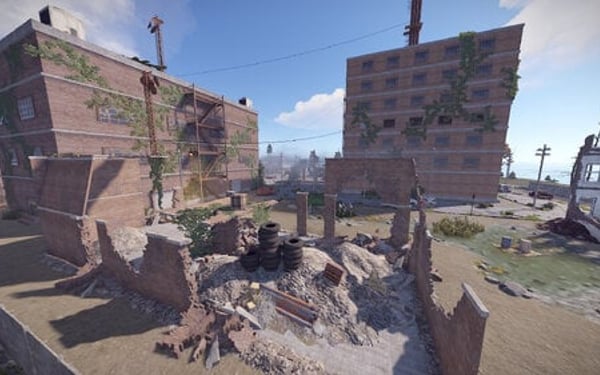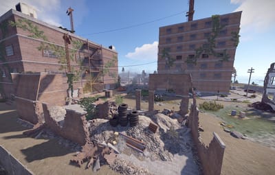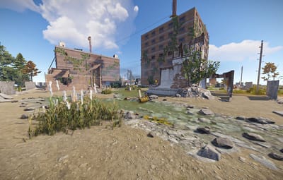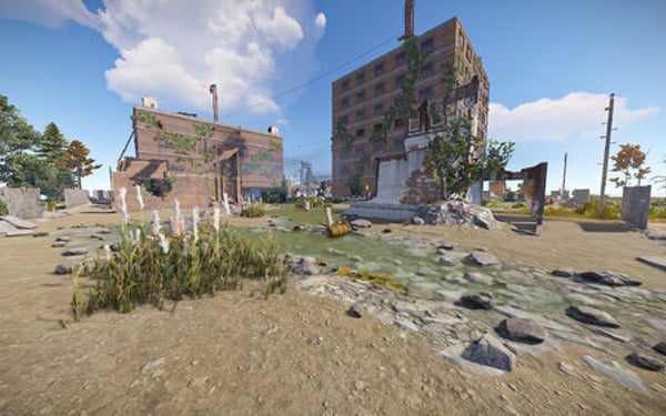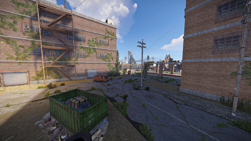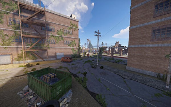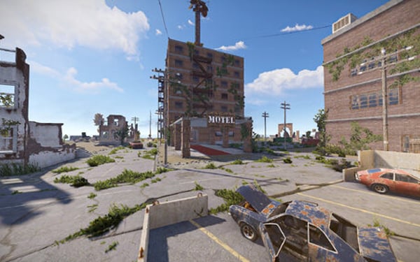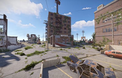 An abandoned city, leaving behind scientists, ruins and a few standing buildings, including a motel and a market.