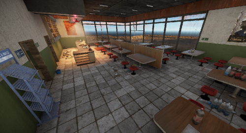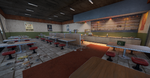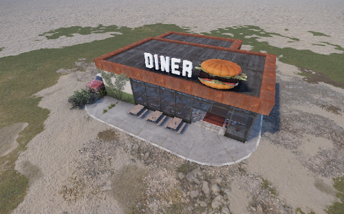 In this diner you will find loot boxes with food. The structure is based on the supermarket, but built with the new cubes. Lots of love for details.