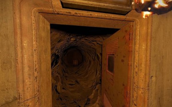 You will fall in to a cave full of water so be quick to climb out the hatch before you drown .