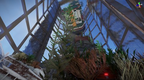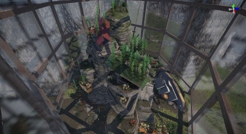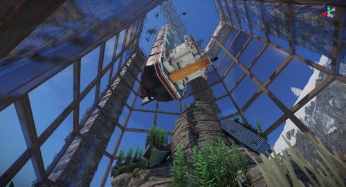Climb the vines on the pillars or work your way up the mountain to get to the top of the scuba tank