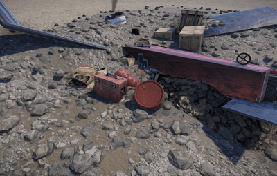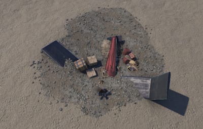 A German biplane that crashed into the ground leaving pieces of the plane and a very small amount of loot as well. Perfect as a roadside monument or as a scene for players to find when roaming the lands. 80 prefabs. Only $0.10 to keep it unique.