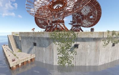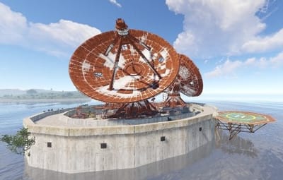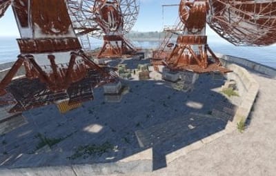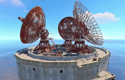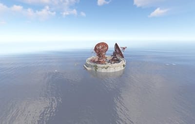 This monument can be use as a nice ocean monument on its own or on smaller maps as a space saving replacement for satellite dish. Green card puzzle & loot as well as recycler, and blue card spawn. Perfect for any maps of any size for a early game monument.