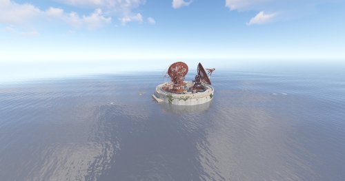 This monument can be use as a nice ocean monument on its own or on smaller maps as a space saving replacement for satellite dish. Green card puzzle & loot as well as recycler, and blue card spawn. Perfect for any maps of any size for a early game monument.