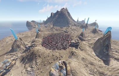 - There is a quarry on the island that will extract resources for players while they defend it boats, balloons, barrels, fuel barrels will spawn on the island