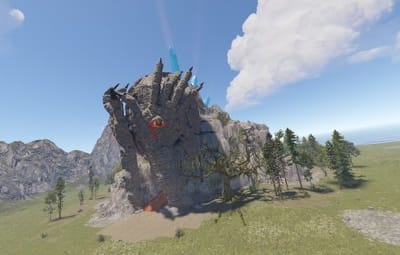 - There is a forest topology around the cave, which means that players will be able to cut down the forest