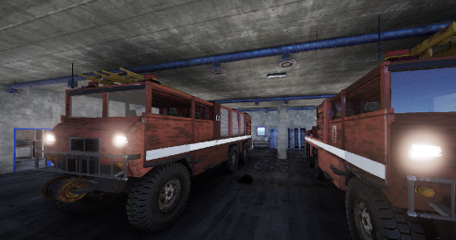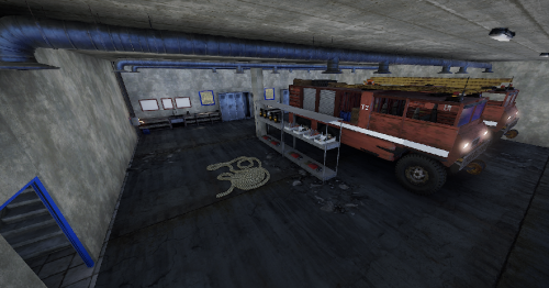 The fire station is a large building with a puzzle. there is a vehicle hall with two Fire-Trucks. The good loot boxes are in the storage room. there are many rooms to explore on the upper floor.