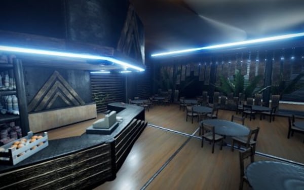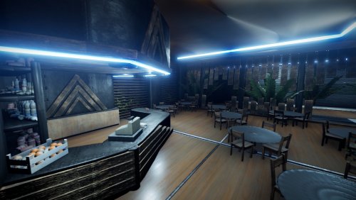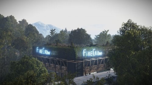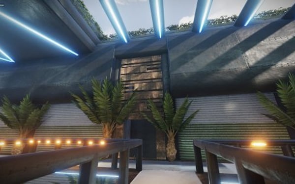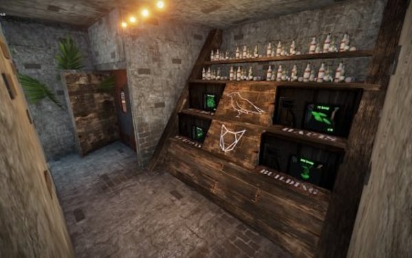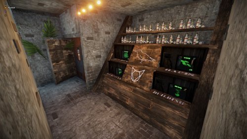 A shopping mall fully setup as a safe zone, with all vending machines, helicopter, recyclers, etc.