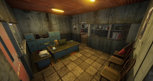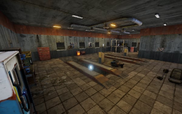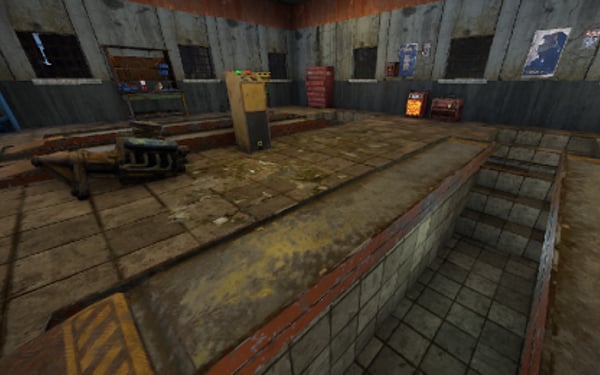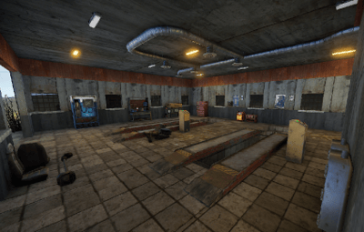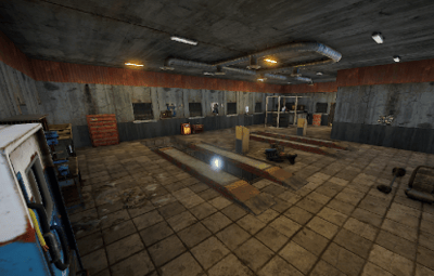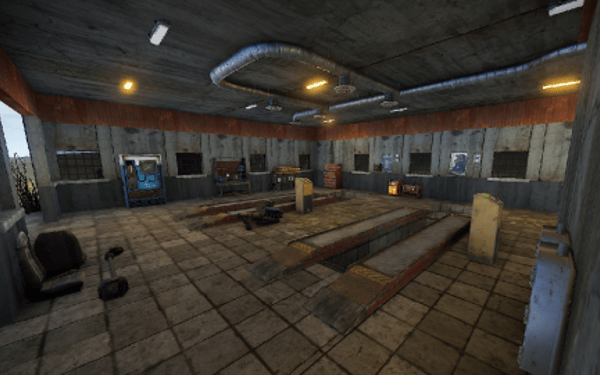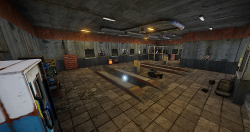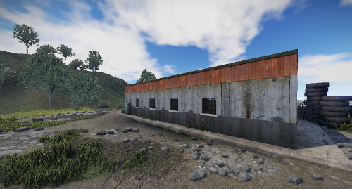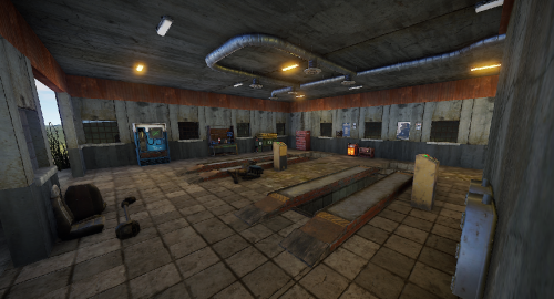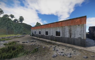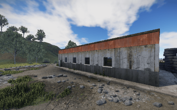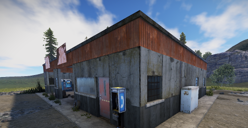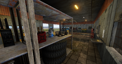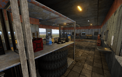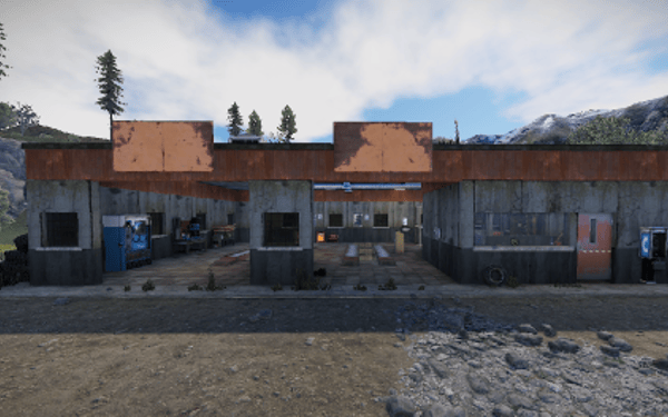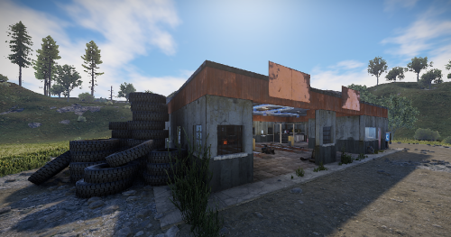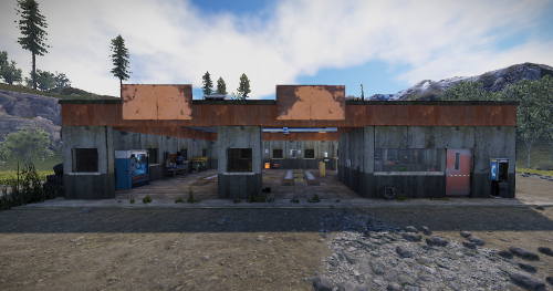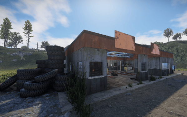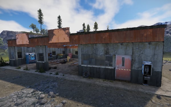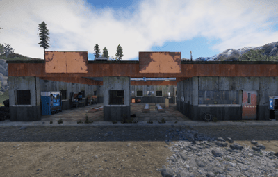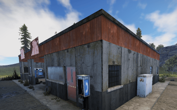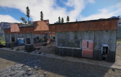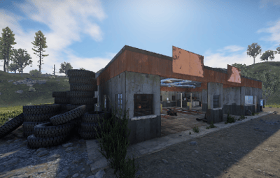 An old garage somewhere in the middle of nowhere. Inside is a vending machine, a recycler, and workbenches 1 and 2. Loot can be found in some crates.