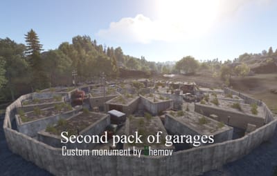 There are 2 monuments with garages for your map with simple installation (Example -