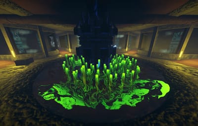 An atmospheric monument that can be installed in any biome. Activation of the door to the underground part is activated by a button on the panel. There is a loot box in the ship. In the underground part you will find puzzles with blue and red cards. There is strong radiation and good loot in the center of the generator.