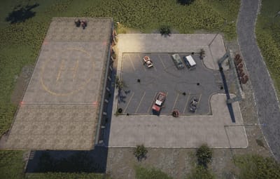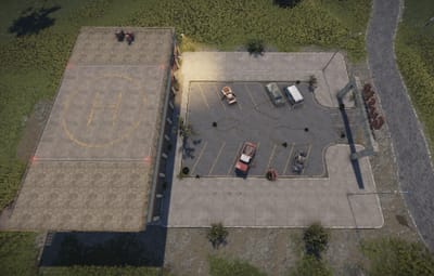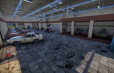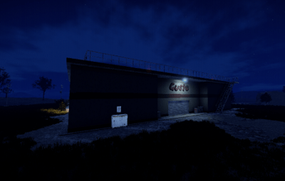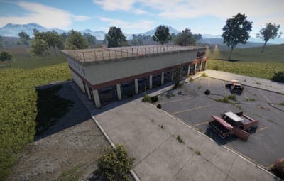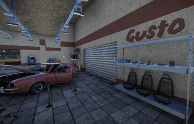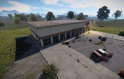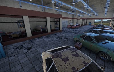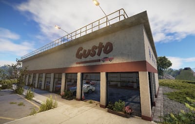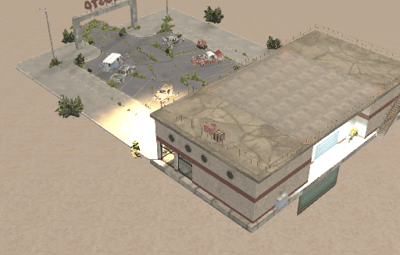 In this building the cars are sold. The company Gusto shows which cars they have. Individual parts can be found at two vending machines. Loot is in the offices. Outside there is a recycler and on the roof there is a landing pad for VIP customers.