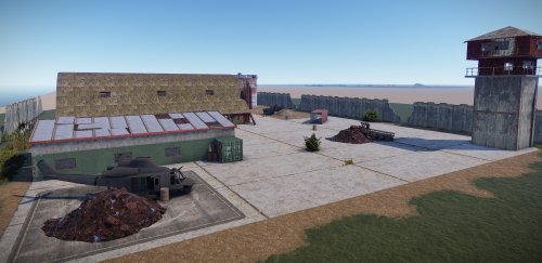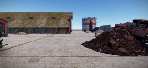 The Hangar Outpost is a perfectly sized custom monument made for PVP and a quick loot run. Containing various levels of loot from barrels to two green crates, players will have the chance at great reward given they're daring enough to take the risk. Equipped with a climbable silo, various hiding spots, and blind firing crooks/crannies.