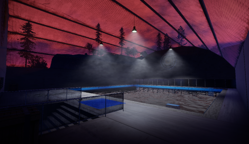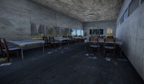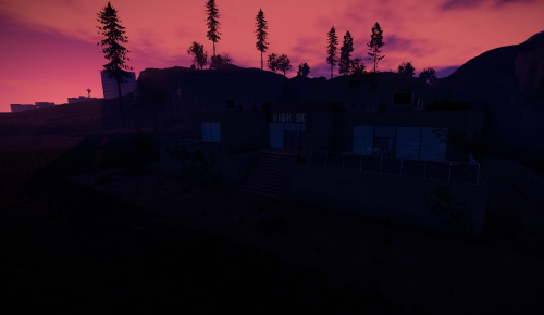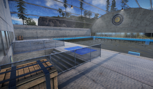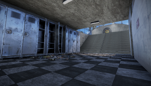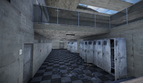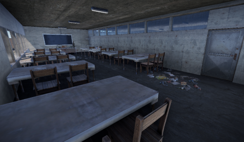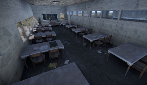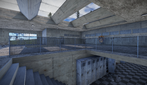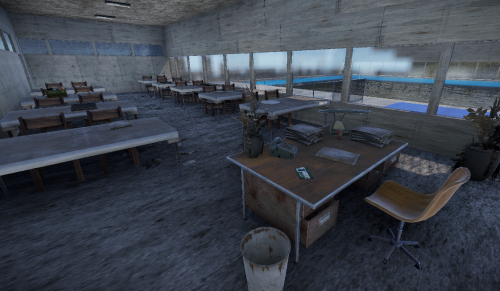 An abandoned school awaits discovery. The lounge is in the entrance area. Five classrooms with two toilet rooms are spread over two floors. A large swimming pool can be found in the sports hall. loot can be found in the lower corridors and in the classrooms.