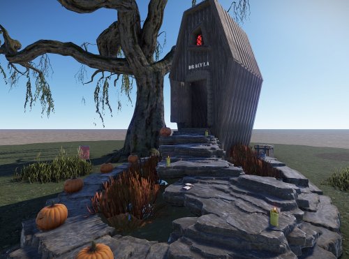 Small monument to add to your map for the Halloween. Only has 326 entity count. Has various loot barrels/boxes. 1 Npc added. Collider added to picture frame to prevent theft. You must go to the top to add /sil to frame if adding.