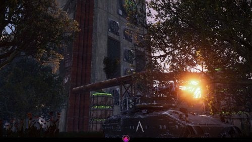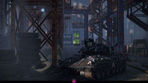 A highly aggressive Bradley patrols the entire plant and its territory. It navigates multiple paths, reaching nearly every corner, occasionally venturing onto the road outside, opening the factory doors independently to re-enter.
