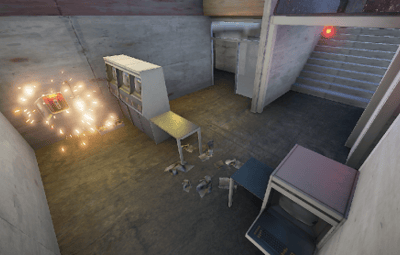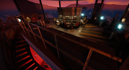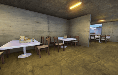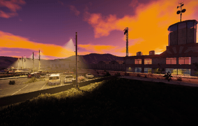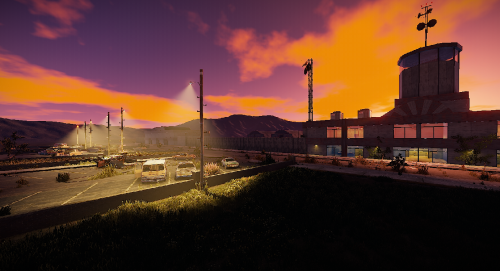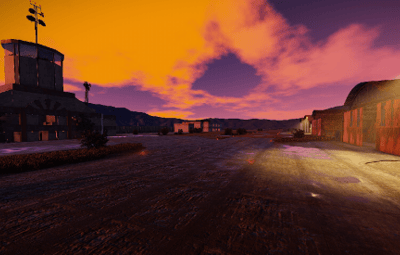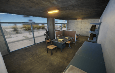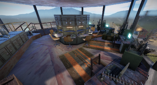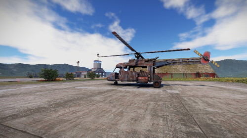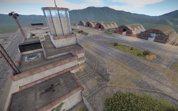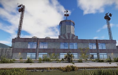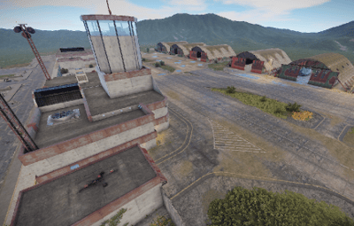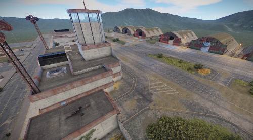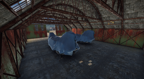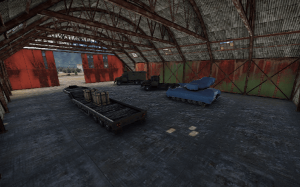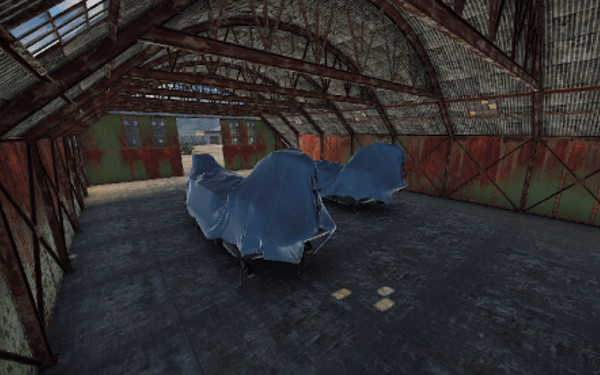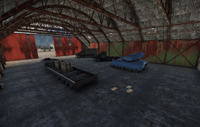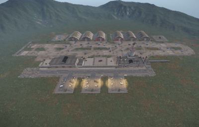 Garages with tanks and hanga halls with helicopters can be found on the Airfield.