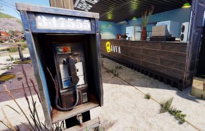 Contains a box of food, a vending machine with food, a barrel of loot, a telephone (number 347555).