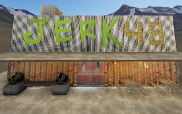A restaurant called Jerk 48, originally a Jamacian restaurant from Chicago made as a rust monument.