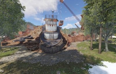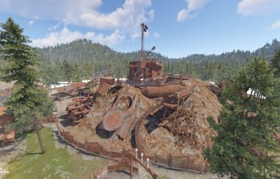 A junkyard created from scratch and with the addition of a railway. RT has two recyclers, an elevator for cars, a blue card. Boxes and barrels will appear on the territory, cars will appear on the road. There are barricades in buildings that can block rooms or a short road in parkour. This place is accessible for helicopters, cars and trains. you can also easily walk around the perimeter. There is a forest growing around, which will allow other players to calmly approach RT.