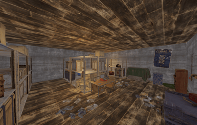 Has one recycler. One level 1 workbench and repair bench in green card room.