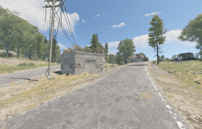 There is a disused and broken barn beside the road that has a nearby fresh water pump, that can supply players water needs if they have a truck to fill.