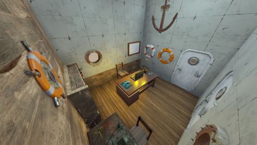 This is a prefab reference Krusty Krab restaurant from the SpongeBob SquarePants anime. All chairs are available for sitting. It has a boiler, cameras and toilets. All cameras can be viewed at the computer station in the office.
