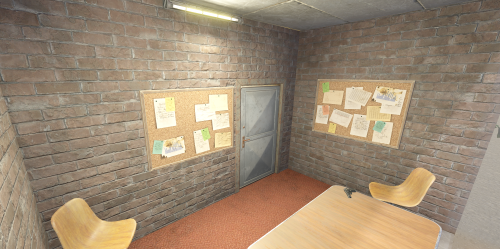 Interrogation Room: A dedicated, atmospheric space for staff inquiries.