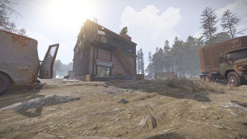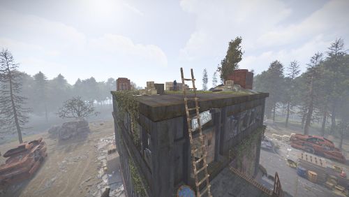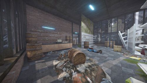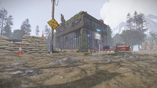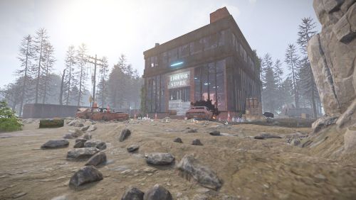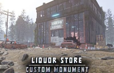 A deserted Liquor Store with a mini motel on top, now occupied by scientists. This monument is similar in size, style and loot to the vanilla supermarket and is perfect for one grids or smaller maps in general.
