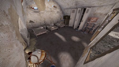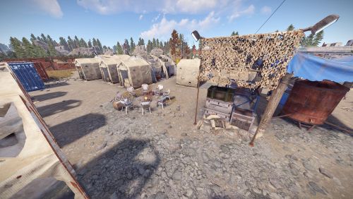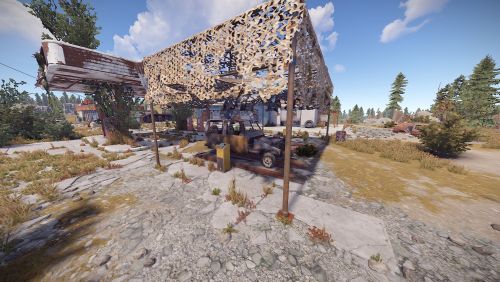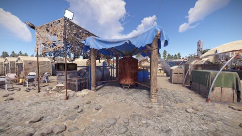 A camp in which deserters from a military base were hiding, but at one point they disappeared, leaving behind many useful things that can be used for survival.