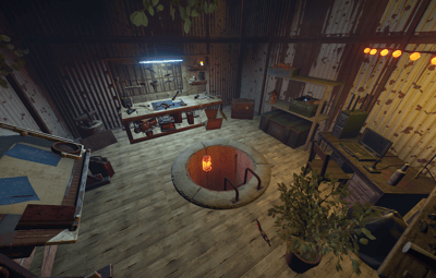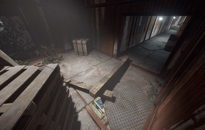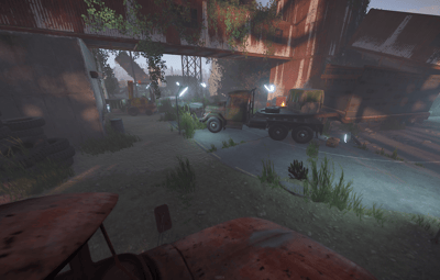 The scene shows a rotten loading station surrounded by a little forest, which was used to reload goods from trains to trucks and trucks to trains in the good old times.