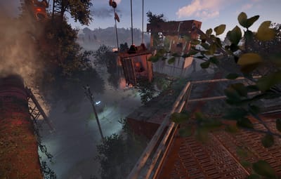 But it isn ´t so leave as it seems. A group of scientists was using the loading station to reload armory to a train and send it to the compound as suddenly one of the rusty structures collapsed and buried an armored truck among themselves.