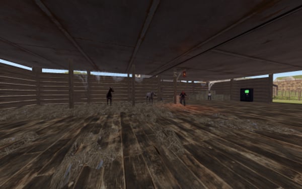 Has 5 horse spawners and a vending machine with both Saddles, both Horse Shoes and Roadsign Horse Armor. To claim a horse buy a saddle and hold your action key until it says "Buy Horse".