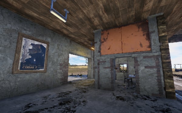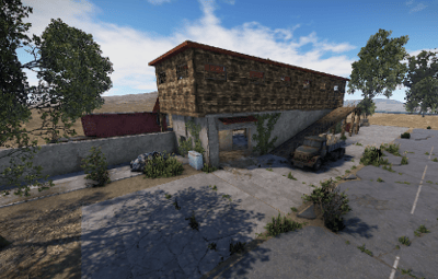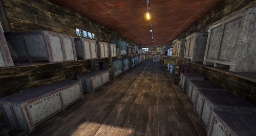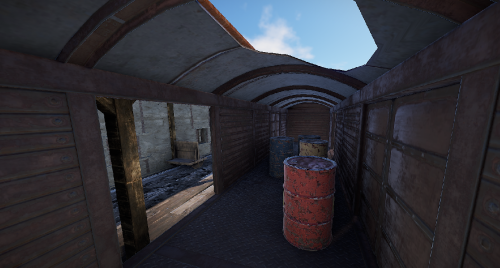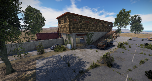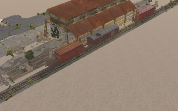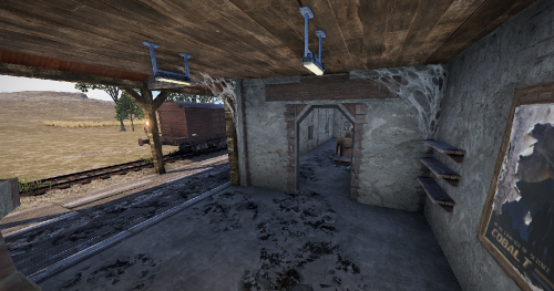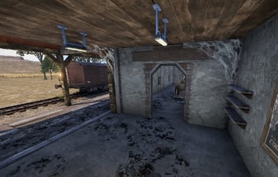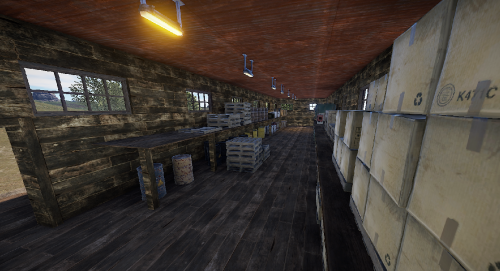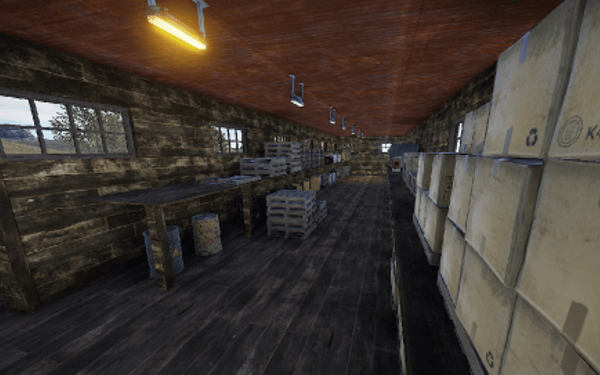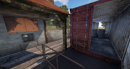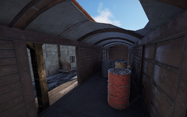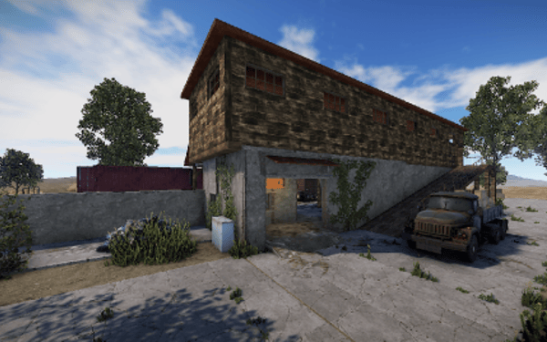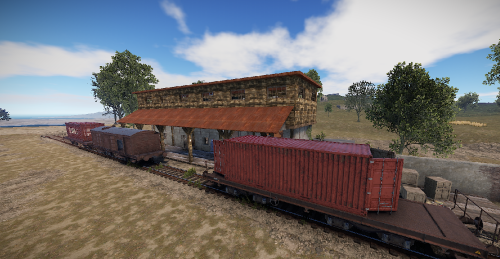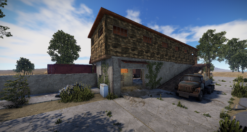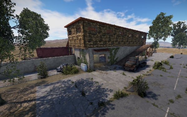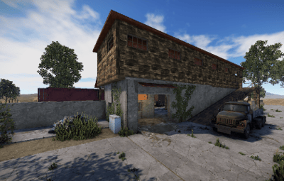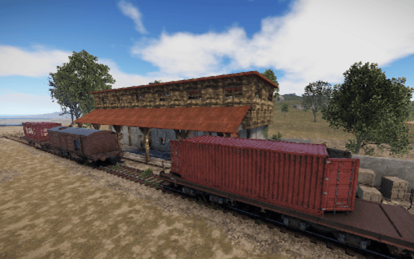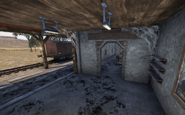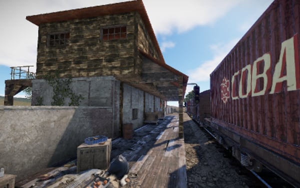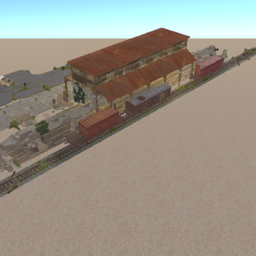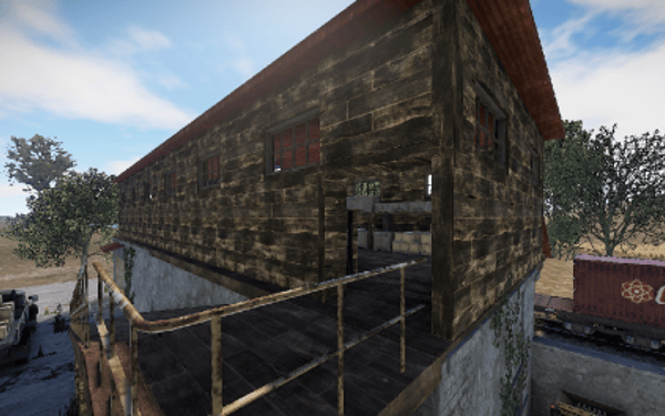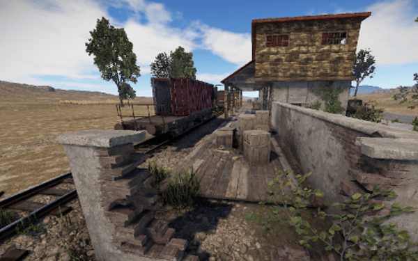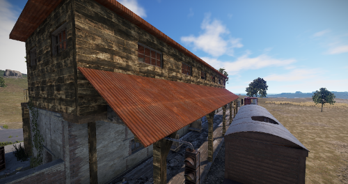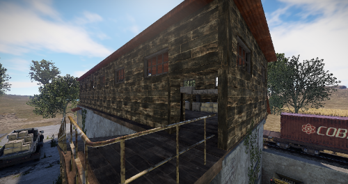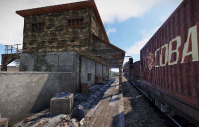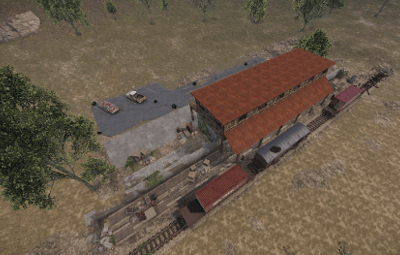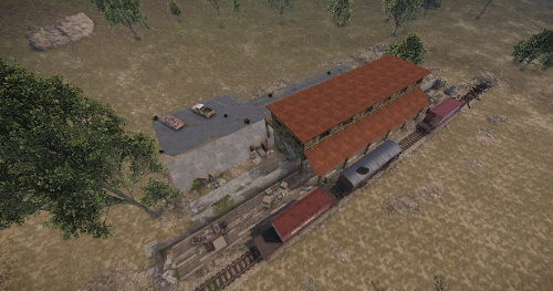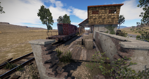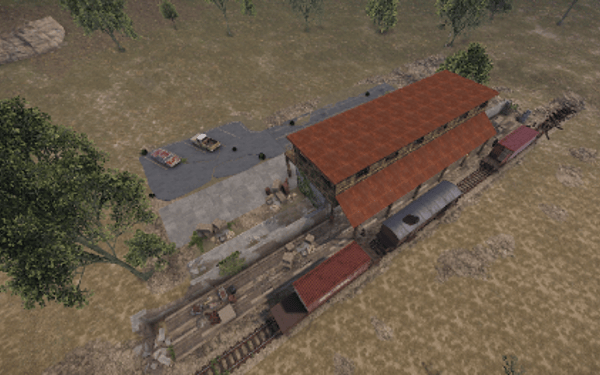 A small abandoned train station in the middle of nowhere. There is a large warehouse with loot boxes on the upper floor.