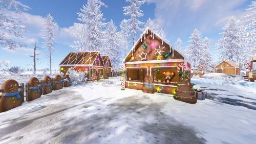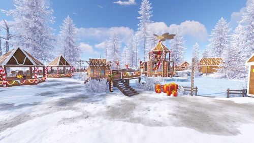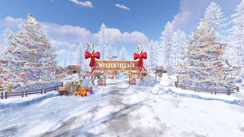 The village contains two vending machines selling christmas stuff like christmas tree, candy's etc.