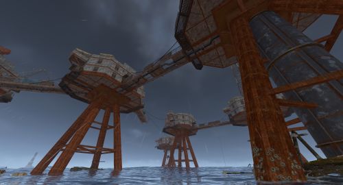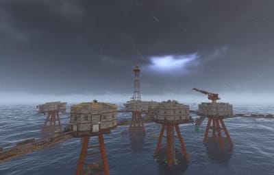 The buildable forts are fully functional sea forts, not simple platforms. Players can: