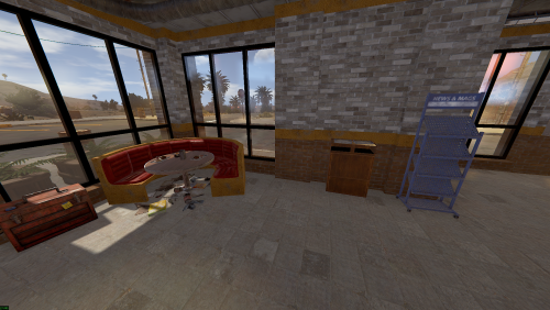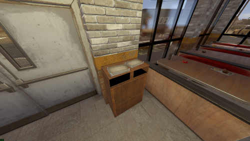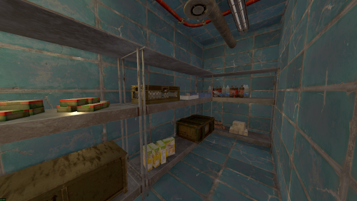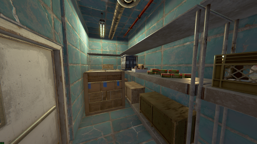 1 green crate, 2 brown crates, 2 small food crates, 2 food caches, 1 basic small crate, 2 small tool crates.
