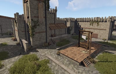 Step into this medieval-inspired outpost, a unique safezone where players can come together to mingle, trade, and form alliances. Designed with towering stone walls and a fortified gate, this outpost offers a secure environment for friendly interactions in the otherwise harsh world of Rust. Whether you're looking to meet new allies, share resources, or simply relax in peace, this outpost provides a safe retreat from the chaos of the wilderness and raiders. Perfect for building connections and taking a break from the action, it’s the ideal spot for players to gather and socialize.