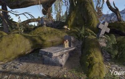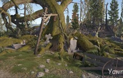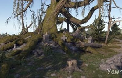 Yawning Grave is a hauntingly beautiful site located in the vicinity of an ancient oak tree that dates back to medieval times. Here many fallen warriors rest, as well as the abandoned caretakers' residence.